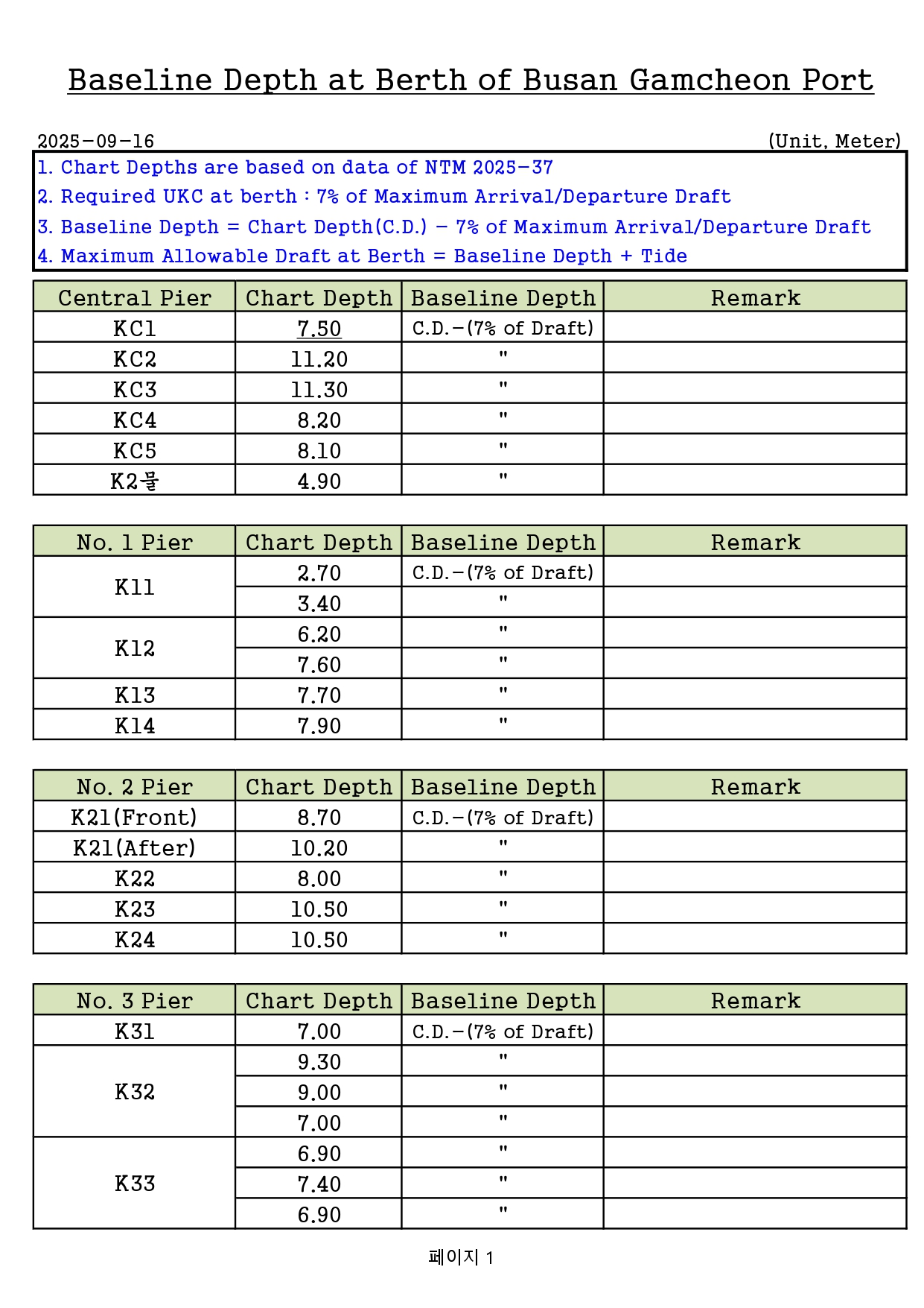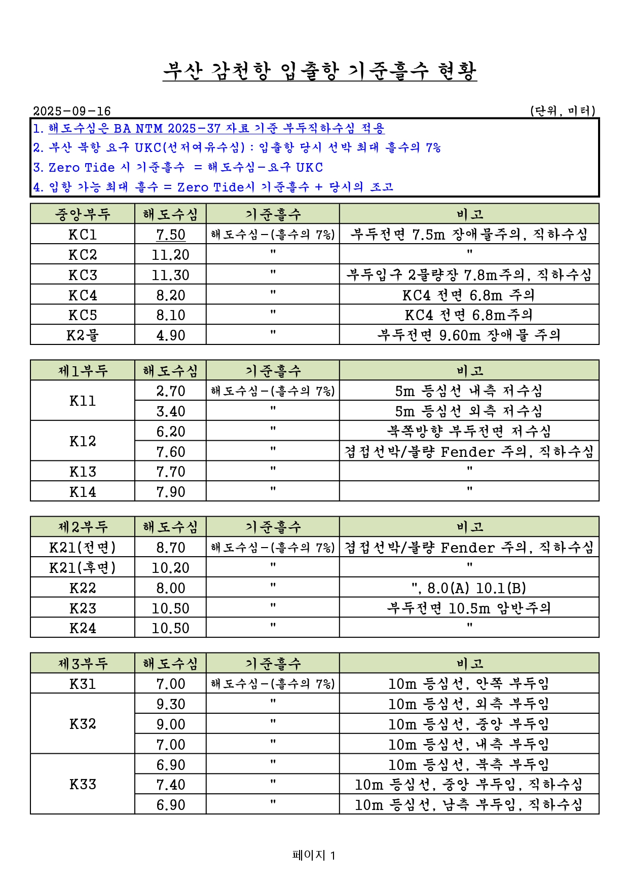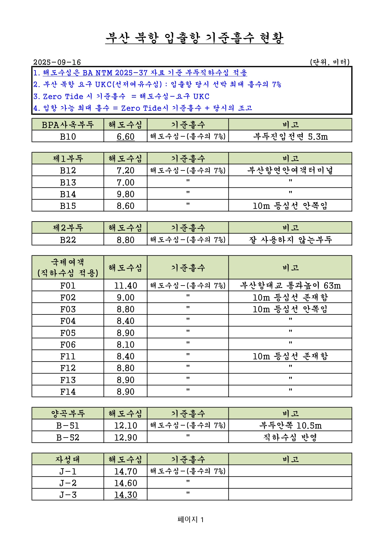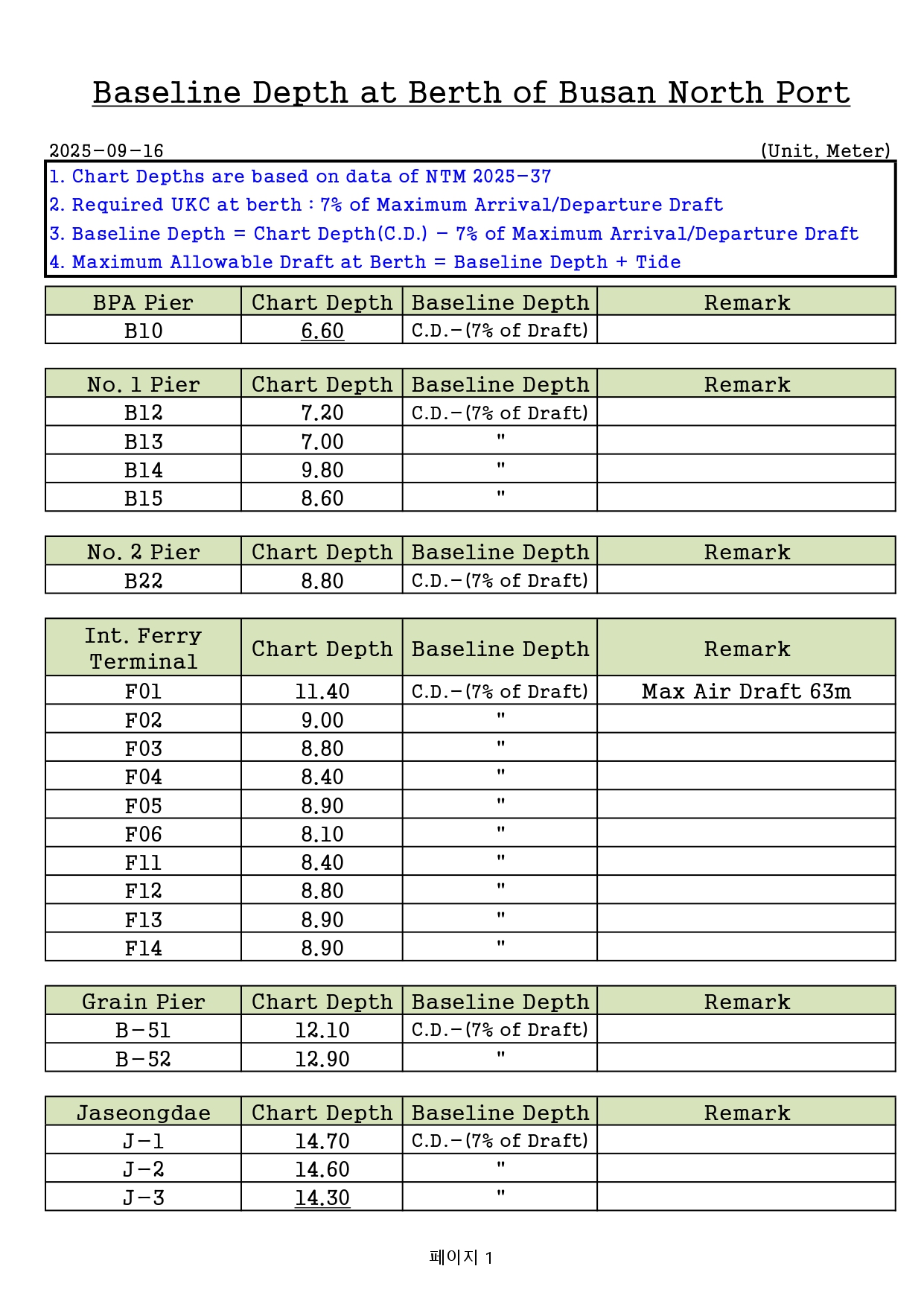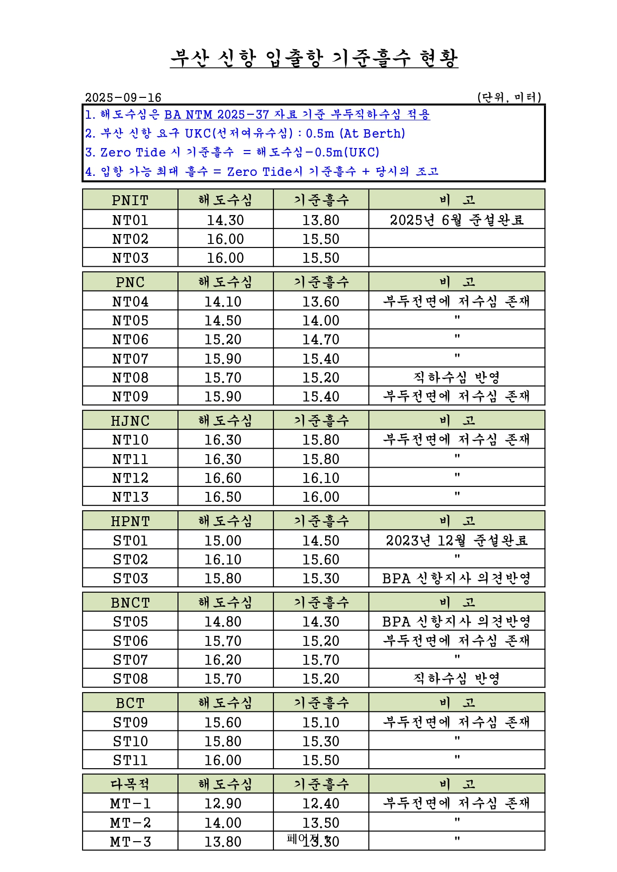 [25.10.15 갱신, 영문추가 / 도선신청 전 필독]부산항 및 부산신항 해도개정에 따른 선박의 입출항 최대허용흘수 알림